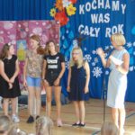 Pani Małgorzata Dolna dokonała rocznego podsumowania czytelnictwa. Najwięcej czytające klasy otrzymały dyplomy, natomiast indywidualni czytelnicy – dyplomy i nagrody książkowe.