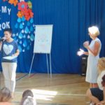 Następnie Pani Dyrektor wraz z Panią Martą Bieniek podsumowały kampanię „Rowerowy Maj”. Warto podkreślić, że w klasyfikacji ogólnej płockich szkół zajęliśmy III miejsce. Klasy i uczniowie biorący aktywny udział w kampanii otrzymali dyplomy okolicznościowe i upominki.