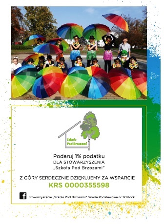 Podaruj 1% podatku DLA STOWARZYSZENIA „Szkoła Pod Brzozami”
