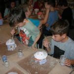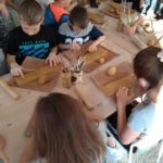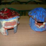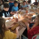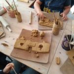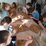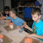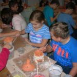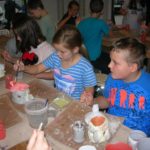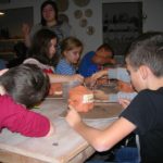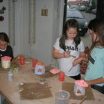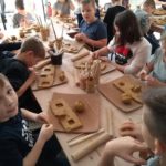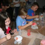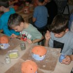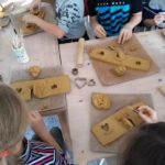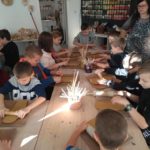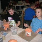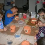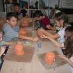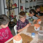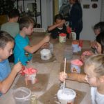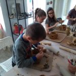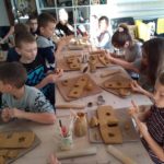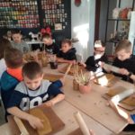 Uczniowie klasy IV B uczestniczyli w okresie przedświątecznym w warsztatach prowadzonych przez pracownię ceramiczną w Płocku. Podczas dwóch spotkań wykonywali domki – kominki. Najpierw musieli rozwałkować duże kawałki gliny, w których następnie wycinali drzwi i okna o różnych kształtach. Potem zwijali glinę formując ściany domków, a następnie wykonywali dachy. Podczas kolejnego spotkania ozdabiali domki, które zostały wcześniej wypalone w piecu ceramicznym. Malowali je różnymi szkliwami starając się, aby były jak najładniejsze. Potem domki zostały ponownie wypalone w piecu i wreszcie uzyskały swój ostateczny wygląd. Dzieci uczestniczyły w warsztatach bardzo chętnie, bawiły się znakomicie i były zachwycone końcowym efektem swojej pracy.