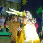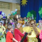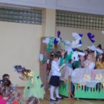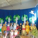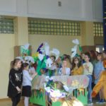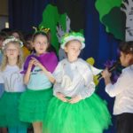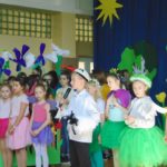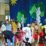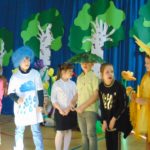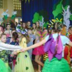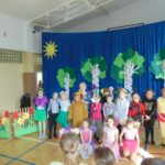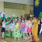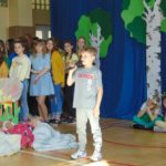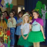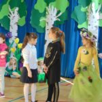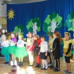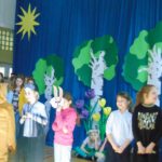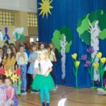 Dnia 21 marca uczniowie klasy III a i III b zaprosili koleżanki i kolegów z klas I-IV na wspólne powitanie Wiosny. Dzieci i wróżki oraz cała przyroda, nie mogąc doczekać się wiosny, głośno ją przywołały. A Wiosna- cała w kwiatach, z uśmiechem i piosenką: obudziła zwierzęta, zaprosiła do pomocy słoneczko, deszcz i wiatr. Szybko zrobiło się kolorowo i wesoło. Pod brzozami rozkwitły wiosenne kwiaty, a nad nimi górowały bociany, ptaki, motyle i biedronki. Ucieszone dzieci zaśpiewały piosenki i wyruszyły na wiosenny spacer. Przed deszczem chronił je parasol, a chór śpiewających dziewcząt i chłopców śpiewał głośno, aby Wiosna już nas nie opuściła. Wszyscy uczestnicy uroczystości byli w kolorowych strojach oraz dopisywał im radosny wiosenny nastrój.