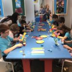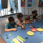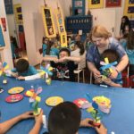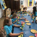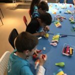 Dzieci najpierw zapoznały się z nagrodzonymi pracami plastycznymi, omówiły sposób i technikę ich powstania. Następnie przystąpiły do wykonania kwiatów. Robiły kolejne elementy i łączyły w całość pod nadzorem instruktora .