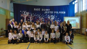 8 listopada 2019 r., godz. 11.11 Udział uczniów w ogólnopolskiej akcji szkół i przedszkoli „Szkoła do hymnu” z okazji 101 rocznicy odzyskania przez Polskę niepodległości- wspólne zaśpiewanie „Mazurka Dąbrowskiego”.