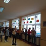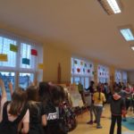 W związku ze światowymi obchodami Dnia Języków Obcych w naszej szkole odbył się nietypowy konkurs. Nauczycielki języków obcych w pocie czoła skakały po drabinach na I piętrze na holu głównym rozwiesiły hasła w różnych językach. Zadanie uczniów polegało na wypełnieniu specjalnie przygotowanych kart ale tylko podczas trzech przerw śródlekcyjnych. W tym dniu można było korzystać z telefonów komórkowych w celu spełnienia warunków konkursu. Wydarzenie wywołało dużo emocji a zaangażowanie uczniów przerosło oczekiwania komisji konkursowej. Zgłoszonych kart konkursowych było niesamowicie dużo. I miejsce zajęła Maja Michalska z klasy 6d. Na II miejscu znalazła się Julia Wolf z klasy 6a a na III miejscu jej koleżanka z klasy – Katarzyna Marzec. Zwycięzcom gratulujemy i zapraszamy wszystkich za rok na kolejną edycję konkursu.