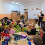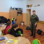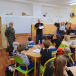 W środę 11. 12 w klasie IIb gościli p. szer. Katarzyna Miecznikowska z 64 Batalionu 6 MBOT i p. Karol Krajewski z Klubu Honorowych Dawców Krwi “Legion” oddział w Płocku. Goście zostali zaproszeni przez Panią Anię Derlukiewicz. Podczas spotkania dzieci dowiedziały się, co to jest honorowe krwiodastwo i jak ważna jest każda kropla krwi. Szer. Katarzyna Miecznikowska opowiedziała dzieciom o służbie wojskowej. Uczniowie mogli przymierzyć kamizelkę wojskową oraz hełm i beret. Na zakończenie spotkania dzieci dostały kolorowanki “ Spacer z kropelką”, ołówki i słodkie mikołaje.