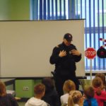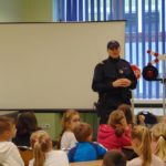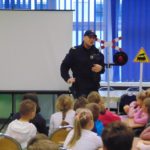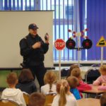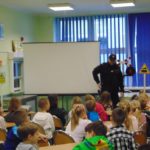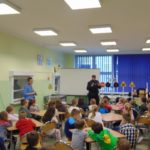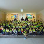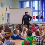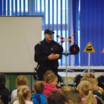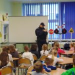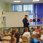 Uczniowie dostali upominki, a na koniec wykonano pamiątkowe zdjęcie w kamizelkach odblaskowych.
