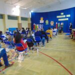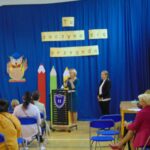 Dyrekcja szkoły i wychowawcy spotkali się z uczniami klas I i rodzicami w sali gimnastycznej w celu powitania nowych uczniów i przekazania najważniejszych informacji organizacyjnych.
