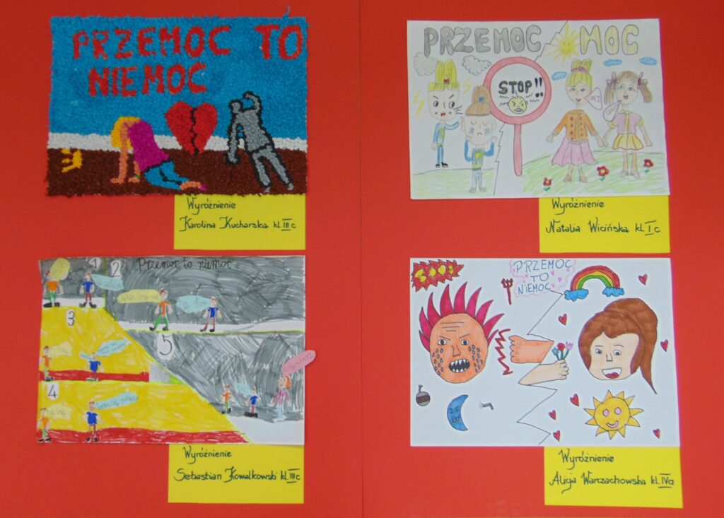 Nasi uczniowie klas I – IV przystąpili do konkursu plastycznego o tematyce profilaktycznej ,,Przemoc to niemoc” finansowanego ze środków Wydziału Zdrowia i Spraw Społecznych Urzędu Miasta Płocka.