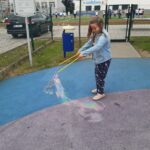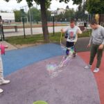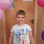 Dzień Dziecka dla klasy 1b był dniem pełnym wrażeń. Dzień rozpoczęliśmy od malowania twarzy. Potem była zabawa na placu zabaw i puszczanie wielkich baniek mydlanych. Był słodki poczęstunek i małe upominki. Na koniec zrobiliśmy kolorowe, brokatowe slimy. Radości nie było końca.