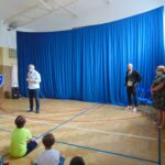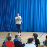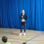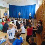 Pan Szymon opowiadał o swojej karierze, hierarchii sędziowskiej i pracy sędziego na największych stadionach świata oraz miłych wspomnieniach związanych z dzieciństwem spędzonym w murach naszej podstawówki. .