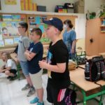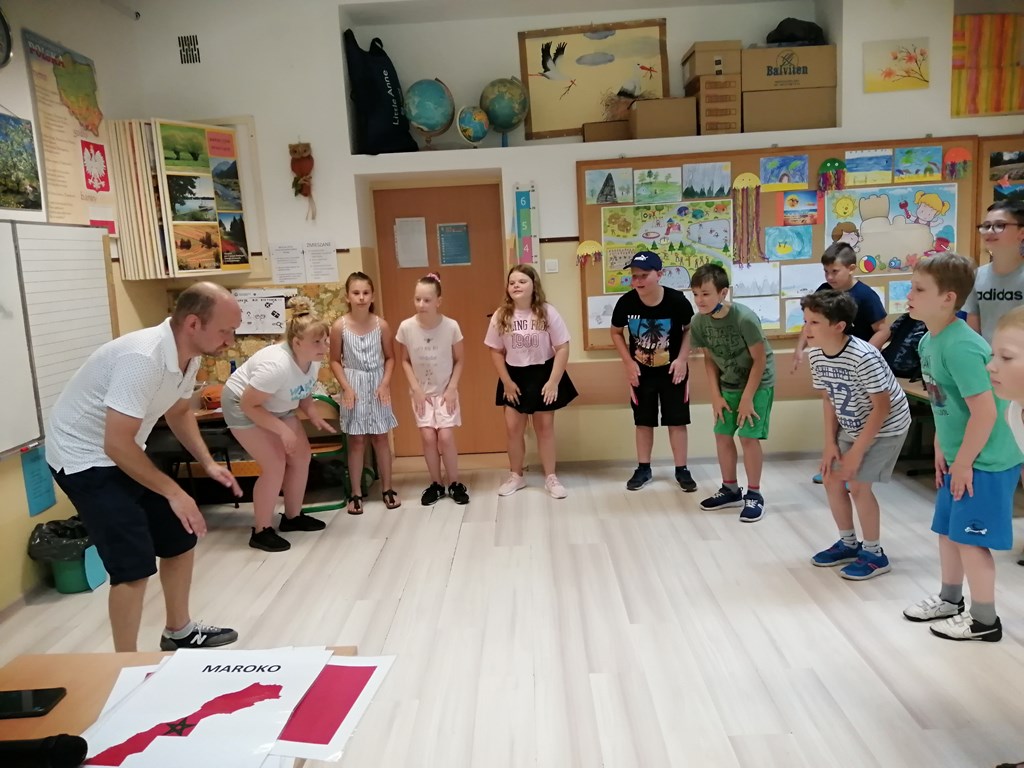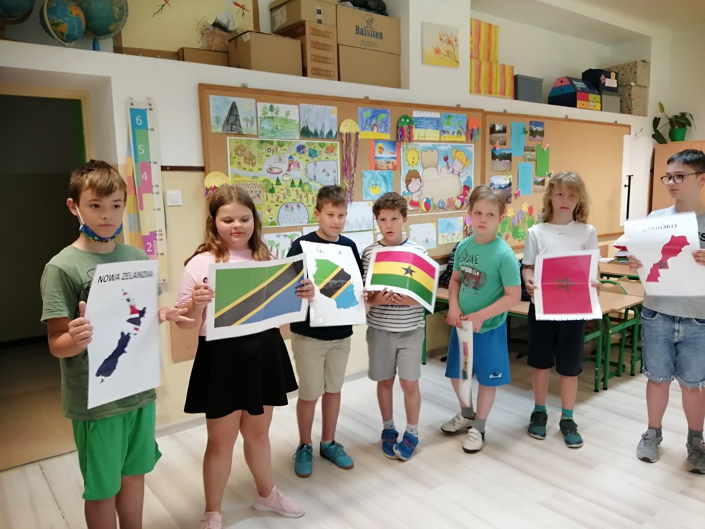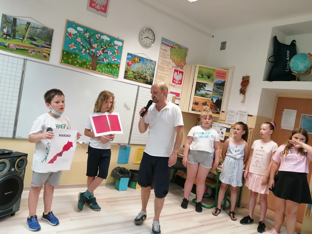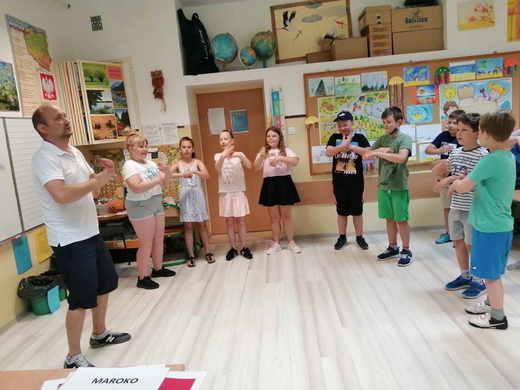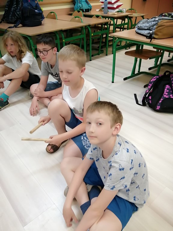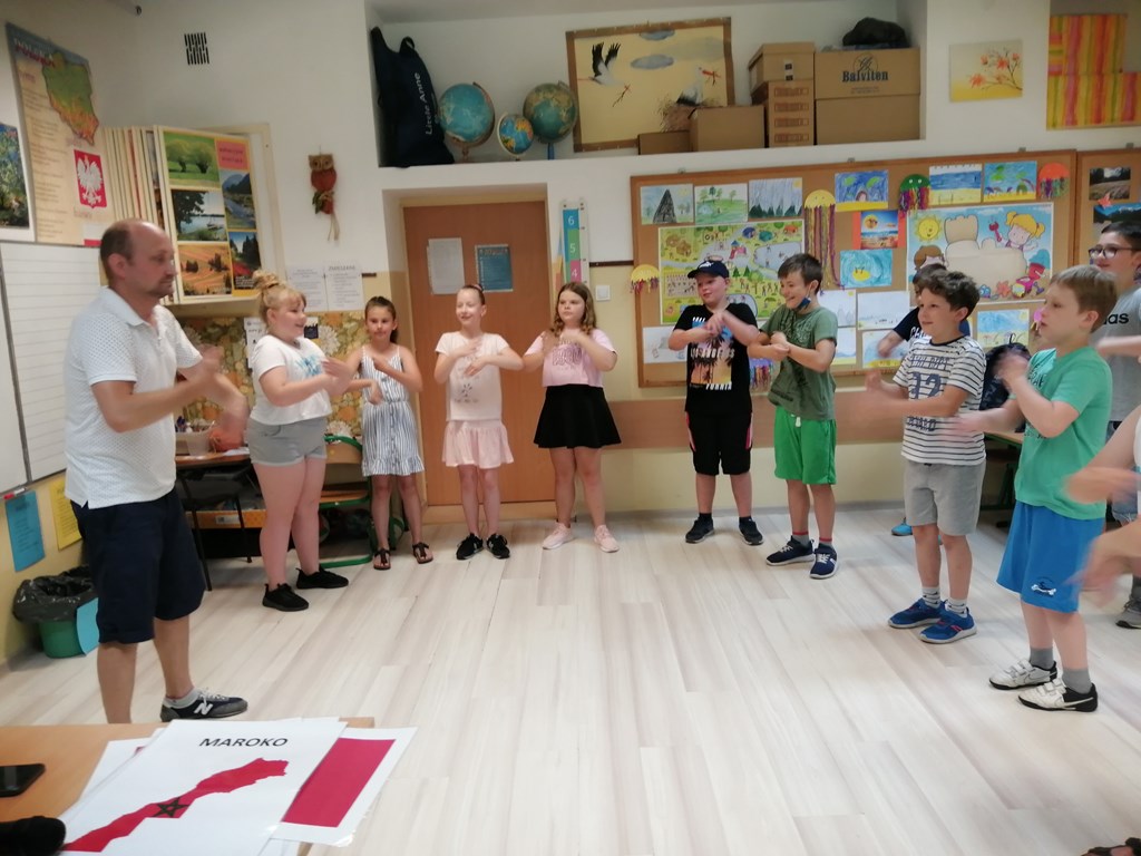 Dnia 21 czerwca 2021 roku w klasie 3 c odbyła się muzyczna podróż po różnych krajach świata, którą przygotował i poprowadził pan Radosław Witkowski, rodzic ucznia z tej klasy. Dzieci miały możliwość obejrzenia mapy danego państwa, jego flagi narodowej oraz wysłuchania różnych ciekawostek na temat danego kraju. Poznały także muzykę danego państwa i uczestniczyły w różnych układach tanecznych. Na koniec spotkania dzieci miały niespodziankę – pan Radosław Witkowski przyniósł ze swojej prywatnej kolekcji ciekawe instrumenty muzyczne z różnych rejonów świata. Było to: kokiriko, bębenek indonezyjski, drumla, flet bambusowy, gwizdek, kołatka z Chin, klawesy. Dzieci były bardzo zaciekawione i chętnie próbowały zagrać na tych instrumentach.