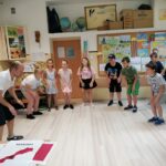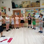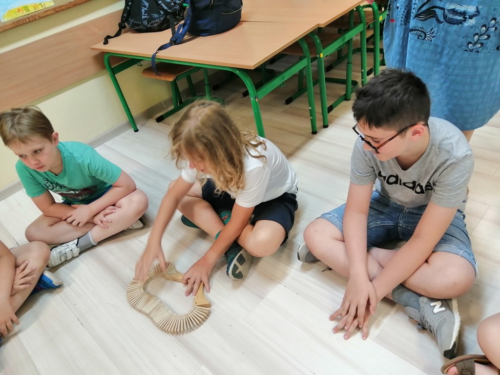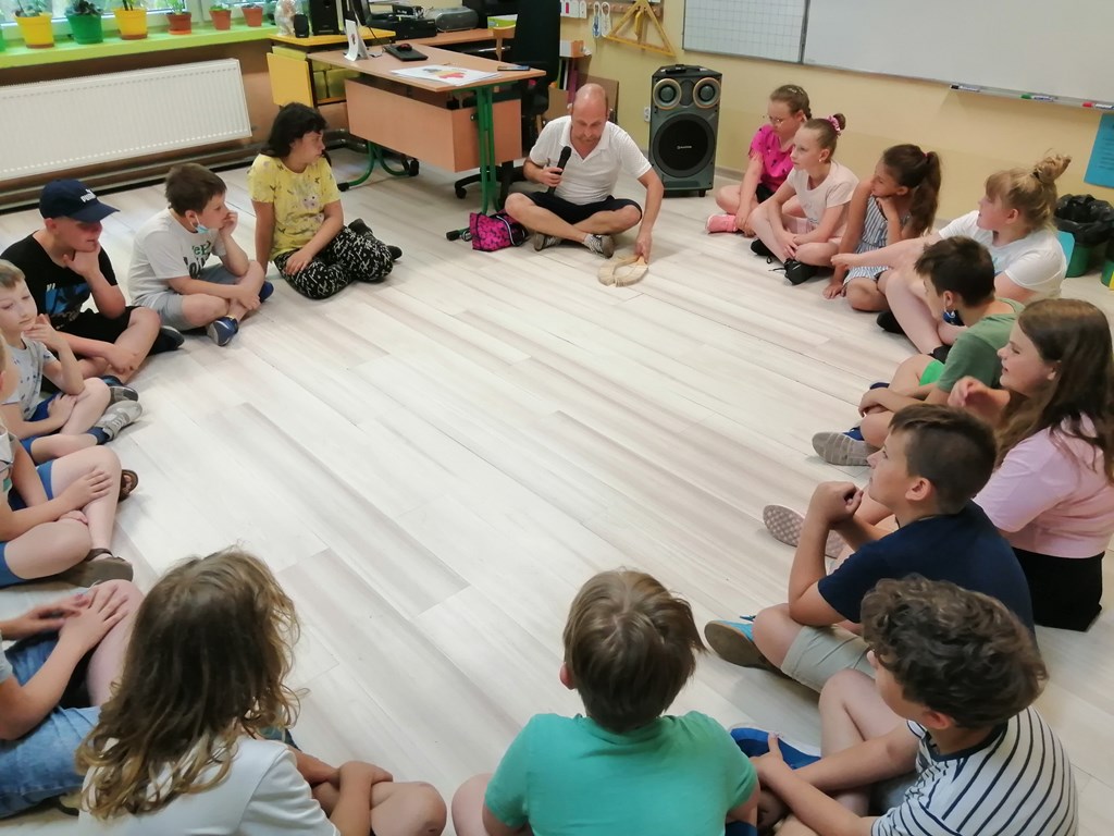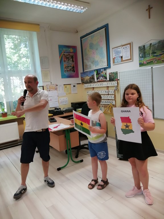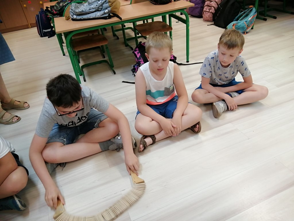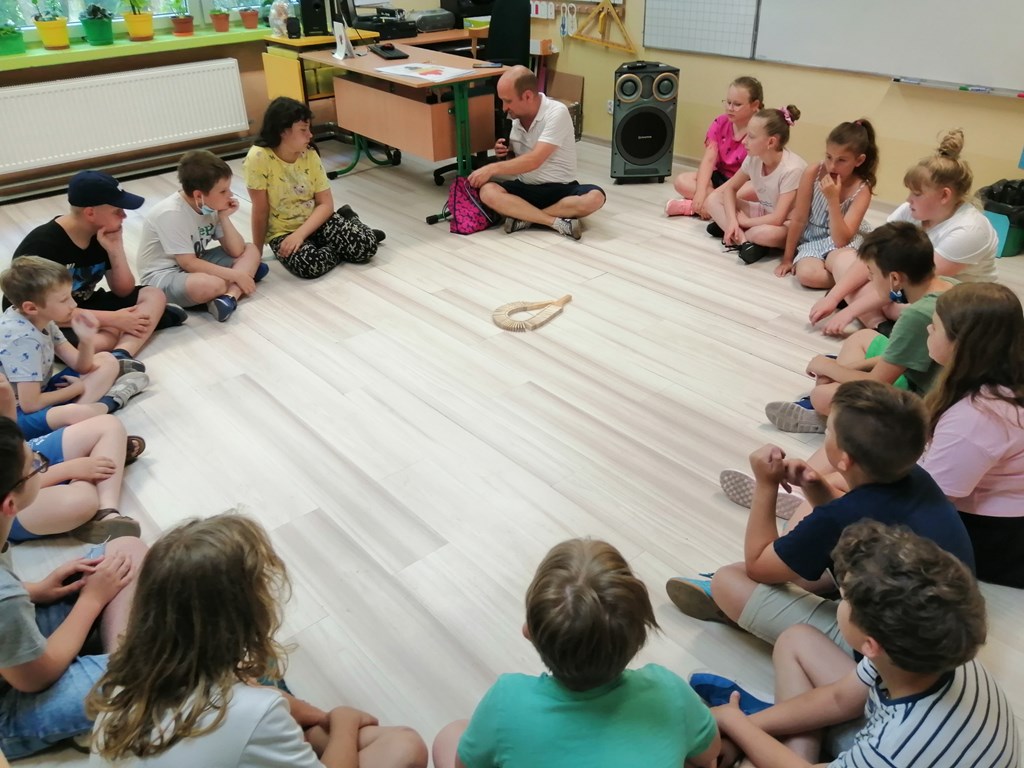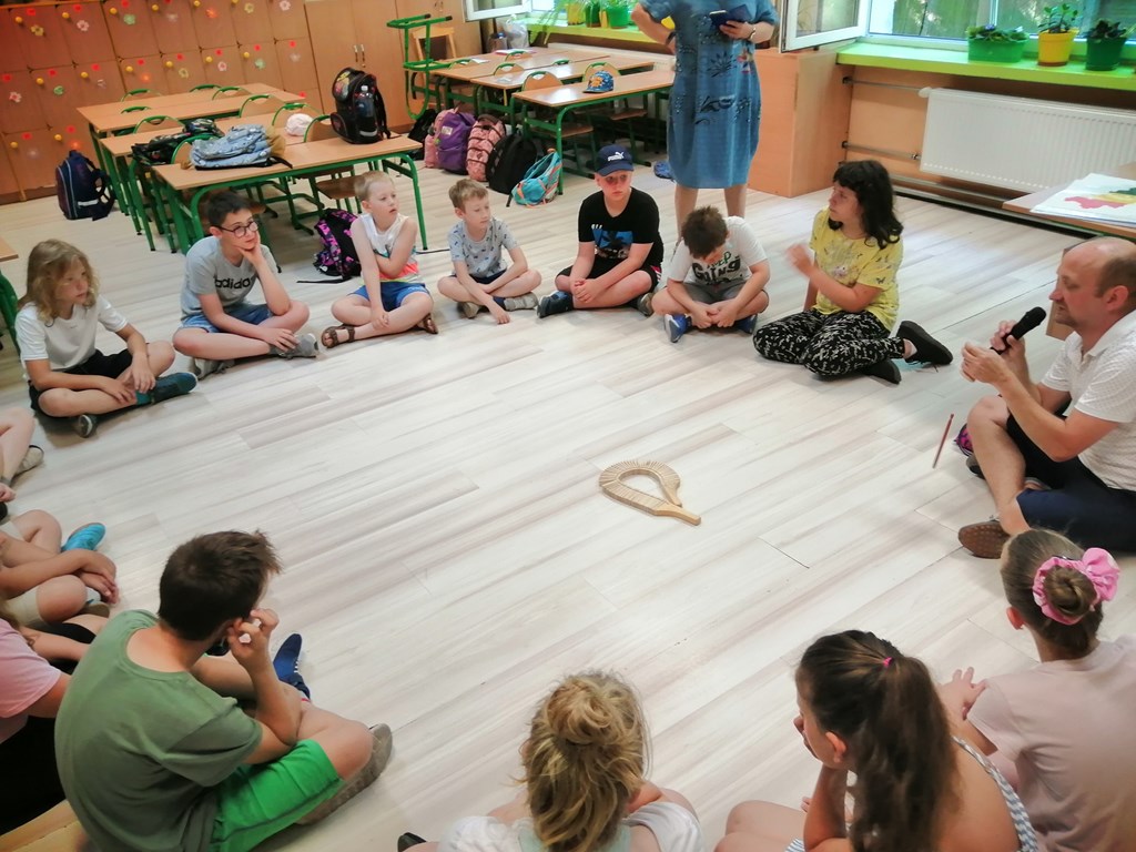 Dnia 21 czerwca 2021 roku w klasie 3 c odbyła się muzyczna podróż po różnych krajach świata, którą przygotował i poprowadził pan Radosław Witkowski, rodzic ucznia z tej klasy. Dzieci miały możliwość obejrzenia mapy danego państwa, jego flagi narodowej oraz wysłuchania różnych ciekawostek na temat danego kraju. Poznały także muzykę danego państwa i uczestniczyły w różnych układach tanecznych. Na koniec spotkania dzieci miały niespodziankę – pan Radosław Witkowski przyniósł ze swojej prywatnej kolekcji ciekawe instrumenty muzyczne z różnych rejonów świata. Było to: kokiriko, bębenek indonezyjski, drumla, flet bambusowy, gwizdek, kołatka z Chin, klawesy. Dzieci były bardzo zaciekawione i chętnie próbowały zagrać na tych instrumentach.