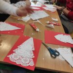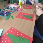 Podczas ostatnich dni nauki stacjonarnej w świetlicy szkolnej trwały intensywne przygotowania do nadchodzących świąt. W każdej grupie rozbrzmiewał śpiew kolęd i piosenek świątecznych, a gazetki przyozdabiały się w piękne, świąteczne dekoracje wykonane przez dzieci. Wychowawcy świetlicy zadbali o to, aby uczniowie dokładnie poznali tradycje i zwyczaje tych niezwykłych świąt. Dzieci wykonywały wiele prac plastycznych, m.in. choinki z papieru, bałwanki, mikołaje, łańcuchy na choinkę, kartki bożonarodzeniowe (różnymi technikami). Młodsze dzieci chętnie spędzały czas kolorując kolorowanki związane ze świętami.
