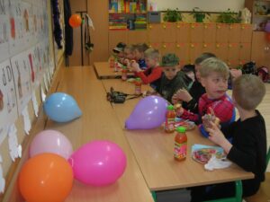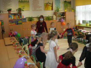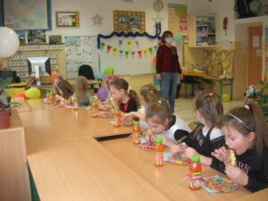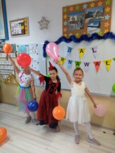 Dnia 18 lutego 2022 roku w klasie 1 a odbył się Bal Karnawałowy. W pięknie udekorowanej przez rodzica – panią Katarzynę Komorowską sali i przy dźwiękach największych przebojów muzycznych wszyscy uczniowie chętnie się bawili. Atrakcyjności balowi dodawały przepiękne stroje dzieci. Oprócz tańców były także wspaniałe i bardzo ciekawe konkursy taneczne przygotowane przez panią Joannę Popowską. Był również pyszny poczęstunek przygotowany przez rodziców – panią Małgorzatę Kotlicką i panią Ilonę Sowińską.