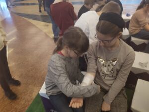 Uczniowie uczyli się udzielania pierwszej pomocy, uczestnicząc w różnych symulacjach działań ratowniczych: od opatrywania ran, do udzielania pomocy, gdy ktoś traci przytomność. Wszyscy uczniowie zdali tę lekcję celująco i w nagrodę otrzymali dyplomy.