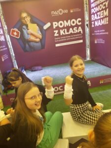 20 kwietnia 2022r. uczniowie klasy 3a wzięli udział w akcji „POMOC Z KLASĄ”, organizowanej przez płocki PCK oraz Galerię Mazovia, pod Honorowym Patronatem Prezydenta Miasta Płocka, Pana Andrzeja Nowakowskiego.