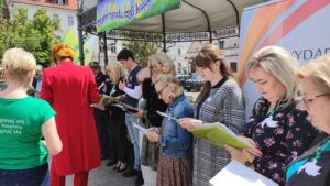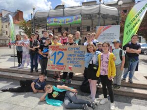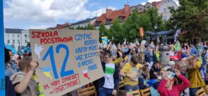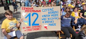 W czwartek 2 czerwca 2022 r. o godz. 11.00 na Starym Rynku po raz dwunasty odbyła się wielka płocka akcja czytania dzieciom ph. „Czytać wypada, czyli książek parada” w ramach XXI Ogólnopolskiego Tygodnia Czytania Dzieciom. Organizatorami akcji była Książnica Płocka Biblioteka dla dzieci im. Wandy Chotomskiej. Treść „Lokomotywy” odczytali m. in.: prezydent miasta Płocka Andrzej Nowakowski, posłanka Elżbieta Gapińska, komendant Straży Miejskiej Konrad Guzanek, dyrektorzy płockich placówek i instytucji kultury, w tym nasza pani dyrektor Agata Bogiel oraz goście z Ukrainy. „12” reprezentowała klasa 4c wraz wychowawcą p. Agnieszką Petrykowską – Chmielewską. Panie z biblioteki szkolnej przygotowały specjalny transparent, na którym obok nazwy szkoły pojawiły się gołąbki pokoju oraz hasło reklamujące czytanie książek