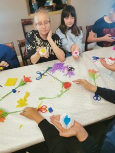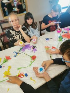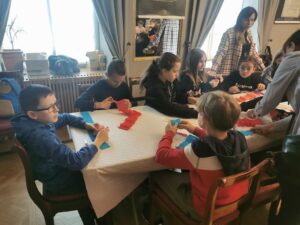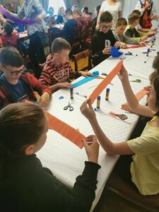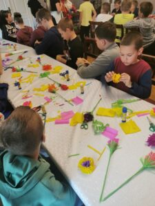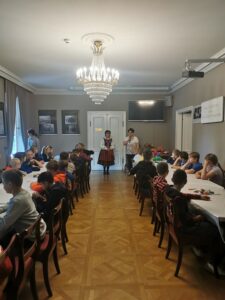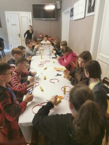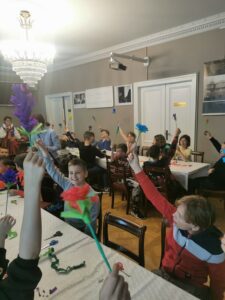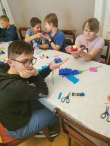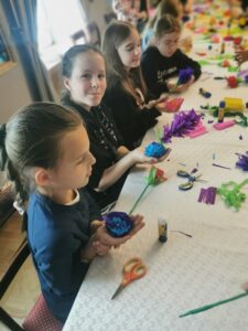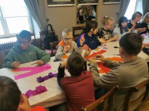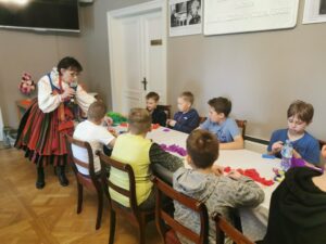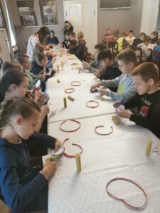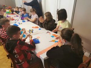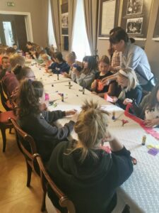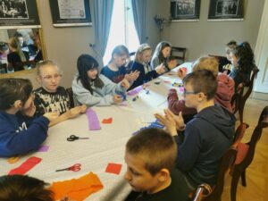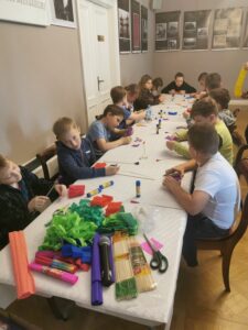W poniedziałek 30 maja 2022 r. klasy 4b i 4c wraz z opiekunami wzięły udział w spotkaniu warsztatowym w Sannickim Zespole Pałacowo – Parkowym im. Fryderyka Chopina ph. „Każde pokolenie chce uczestniczyć w kulturze”, które było sfinansowane w ramach środków Budżetu Obywatelskiego Mazowsza. Tego dnia na dzieci czekała moc atrakcji. Uczniowie zwiedzali piękny pałac z przewodnikiem, wykonywali kwiatki z bibuły „na fiołkową nutę” oraz pamiątkowe świece. Pani prowadząca warsztaty plastyczne opowiedziała o stroju sannicki