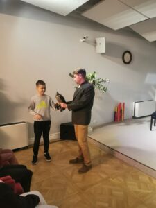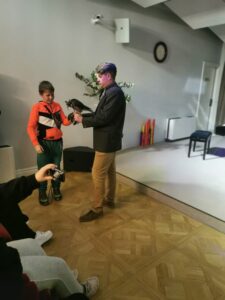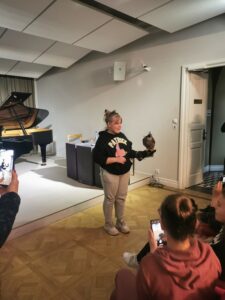m i legendzie Sannik. Następnie dzieci uczestniczyły w bardzo ciekawym spotkaniu z sokolnikiem, każdy mógł zrobić sobie zdjęcie z sokołem wędrownym i zadać nurtujące go pytanie. Kolejnym punktem programu był koncert muzyki poważnej. Prowadzący opowiadali ciekawostki z życia znanego kompozytora, Fryderyka Chopina. Koncert był przeplatany zabawami ruchowymi i śpiewaniem ludowych piosenek. Na zakończenie spotkania był przygotowany grill z kiełbaskami. Na pamiątkę pobytu w Sannikach uczestnicy wycieczki otrzymali czapeczki z daszkiem, z logo miejsca, w którym bardzo przyjemnie spędzili czas. We wspaniałych humorach wróciliśmy do Płocka.