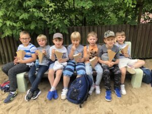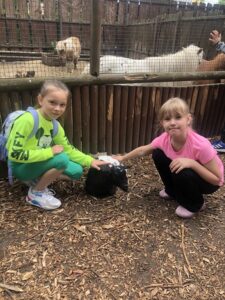 Wielką radością i przyjemnością było dla nas spotkanie oraz zabawy z mieszkańcami Mini Zoo. Było bardzo miło kiedy głaskaliśmy i przytulaliśmy zwierzaki, ale również bardzo śmiesznie, gdy małe kózki chciały nam zjeść bluzę, plecak lub włosy.
