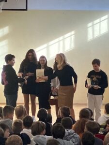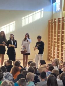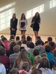 Na spotkaniu z uczniami został przedstawiony skład nowego Samorządu Uczniowskiego oraz plan działań samorządu na bieżacy rok szkolny. W roku szkolnym 2022/2023 Samorząd Uczniowski reprezentuje Zuzanna Pekról z klasy 8d- przewodnicząca SU, Maja Woźniak z klasy 8a- zastępca przewodniczącej SU oraz Julita Rosicka z klasy 8e- skarbnik. Na funkcję rzecznika praw ucznia została powołana Zuzanna Skowrońska z klasy 8a.