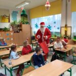 Dnia 6 grudnia 2022 roku w klasie 2 a odbyły się mikołajki klasowe. W pięknej, świątecznej scenerii sali nr 8 na uczniów czekały pięknie zapakowane prezenty. Odwiedził dzieci także Św. Mikołaj ze śnieżynką i wręczył wszystkim słodkie upominki. Dzieci z ogromną ciekawością rozpakowywały prezenty i wspólnie się bawiły.