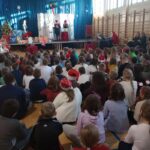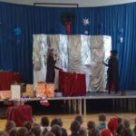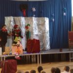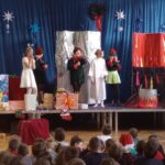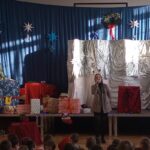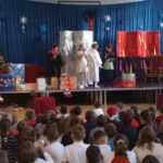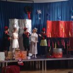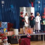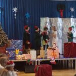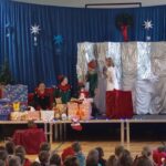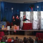 22 grudnia 2022 r. Szkolne Koło Teatralne wraz z Chórem Szkolnym wystawili przedstawienie o tematyce świątecznej pt. „O niezdarnym Elfie i o pomocy, która ratuje wszystko”. Młodzi artyści zaprezentowali swoje wyjątkowe talenty sceniczne i wokalne. Wcielając się w baśniowe postacie, opowiadali metaforyczną historię niezdarnego Elfa Filipka, który podobnie jak wielu z nas, chcę być pomocny, ale czasem wszystko psuje przez zbytnią naiwność lub braki uważności. Spektakl miał nauczyć młodego widza, że jednak warto próbować naprawiać swoje błędy i angażować się w pomoc drugiej istocie, na przykład udzielając się w wolontariacie. W przedstawieniu to sam Święty Mikołaj opowiedział o tym, jak można zostać wolontariuszem, by dać swoje serce potrzebującym. Aktorów przygotowała pani Edyta Szymczak, za oprawę muzyczną i prowadzenie chóru odpowiadał pan Tomasz Sarniak, zaś piękną dekorację na profesjonalnej scenie zainstalowała pani Anna Anielewicz – Wiercińska, wraz z dziećmi z kółka plastycznego.