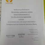 W lutym Szkolne Koło Wolontariatu zorganizowało zbiórkę rzeczy dla płockiego schroniska. Bardzo dziękujemy wszystkim, którzy włączyli się w tę akcję i wspomogli ją. Udało nam się zebrać sporo potrzebnych rzeczy: karmę, koce, podkłady, kojec, dywan, zabawki dla zwierzaków itp. oraz kwotę 300zł, za którą zakupiona została karma.