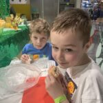 21 kwietnia klasa II c z wychowawczynią Małgorzatą Skierkowską i panią Katarzyną Stopczyńską była w „Fikołkach” na nocowance. Tematem był Dziki Zachód. Nocowanka rozpoczęła się o godz. 19.00. Po rozpakowaniu swoich rzeczy czas na zabawę! Były lasery, labirynty, wspinaczki i zabawy na konstrukcji. Potem samodzielnie robiliśmy tortille na warsztatach kulinarnych. Były pyszne! Do tego cały zestaw przekąsek: szaszłyki owocowe, chrupki, galaretki, soki i woda. Po kolacji przebieranki i zaczynało się drużynowe zbieranie gwiazdek do „Paszportów Szeryfa”. Każda drużyna musiała wykonać po kilka zadań: wyścigi rzędów, strzelanie z łuku, rzucanie do celu, itp. Potem były tańce kowbojskie i sesja zdjęciowa. O 1.00 w nocy zaczął się seans filmowy. Umyci i przebrani w piżamy, leżąc w swoich śpiworach dzieci oglądały film. Połowa od razu zasnęła. Około 3 w nocy wszyscy już smacznie spali. O 8.00 pobudka, mycie, pakowanie i pyszne śniadanie. I znowu zabawa na laserach i konstrukcji. O 10.00 czas do domu. Nocowanka to wspaniały sposób na integrację klasy o super zabawę. Na pewno ją powtórzymy! Polecamy!!!