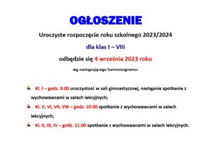 ROZPOCZĘCIE ROKU SZKOLNEGO ORAZ PRZYDZIAŁ SAL