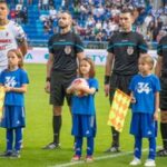 Następnie uczniowie klasy 3 b wprowadzili piłkarzy na murawę stadionu- ESKORTA. 🙂 Było to wielkie przeżycie dla dzieci.