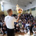 Prowadzącym spotkanie był Kacper „Kacpa” Lachowicz, trener koszykówki, który od 16 lat odwiedza placówki szkolne ze swoim sportowo-wychowawczym show. Program ma zasięg ogólnopolski.