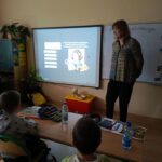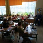 W październiku w klasie II a odbyła się lekcja biblioteczna pn. „Wstrzymał Słońce, ruszył Ziemię” prowadzona przez bibliotekarzy Książnicy Płockiej im. Władysława Broniewskiego- Filia nr2. Uczniowie, podczas prezentacji multimedialnej, przenieśli się do czasów Mikołaja Kopernika. Poznali jego rodzinę, dom w którym mieszkał, poznali produkty, które kupowano w ówczesnych czasach. Dowiedzieli się o pracy i odkryciach naszego astronoma. Potem, jako planety, „poruszali się po orbitach wokół Słońca”. Uczniowie byli bardzo zainteresowani tematem i aktywnie uczestniczyli w zajęciach. A w listopadzie uczniowie wyruszą na wycieczka do Torunia- miejsca urodzenia Mikołaja Kopernika.
