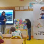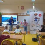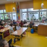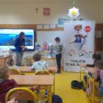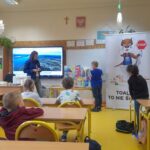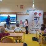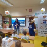 „W piątek 19 kwietnia uczniowie klas pierwszych wzięli udział w niezwykłej lekcji prowadzonej przez Wodociągi Płockie. Uczniowie dowiedzieli się, skąd bierze się woda w płockich kranach, wzięli udział w doświadczeniach a także dowiedzieli się, dlaczego nie można wrzucać śmieci do toalety. Uczniowie poznali także Wydrę – maskotkę Płockich Wodociągów.