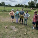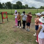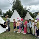 Dnia 4 czerwca uczniowie klas: II a i II b byli na spotkaniu z Indianami i rycerzami. Zanim dotarli do wioski indiańskiej, wybrali sobie indiańskie imię. W wiosce pomalowano im twarze pokojowymi barwami. Potem wszyscy zwiedzili muzeum, w którym zobaczyli niezwykłe eksponaty, które kiedyś były potrzebne Indianom do życia. Były tam piękne pióropusze, ozdobione skóry, które zakładali Indianie, broń, którą niegdyś polowali, instrumenty- bębny, flety i wiele innych zbiorów. Uczniowie weszli również do tipi, aby poznać ich codzienne życie. Następnie zespoły pokonywały tory przeszkód. Na zakończenie wszyscy poznali indiańską piosenkę oraz taniec. Przed wyjazdem dzieci oglądały zwierzęta w mini-zoo oraz zakupiły pamiątki. Aż szkoda było opuszczać to miejsce! Jednak przyszła pora obiadowa i wszystkim burczało w brzuszkach, dlatego cała grupa udała się do restauracji na posiłek. Następnym punktem wycieczki był pobyt na zamku w Łęczycy. Uczniowie poznali kunszt rycerski i zostali pasowani na rycerzy. Zwiedzili zamek z przewodnikiem, poznali legendę o diable Borucie i weszli na zamkową wieżę.