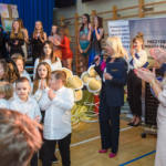 o godz. 11:00 w budynku SP 12 odbyła się część oficjalna obchodów z udziałem zaproszonych gości, którą poprowadziła dyrektor szkoły.