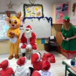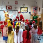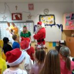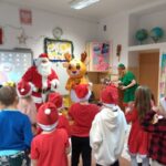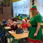 Dnia 6 grudnia 2024 roku w klasie 1c odbyły się klasowe mikołajki. Na mikołajkowe spotkanie z dziećmi przybył Elf, Rudolf Czerwononosy i Św. Mikołaj w przepięknych strojach. Uczniowie świetnie się bawili przy świątecznej, zimowej muzyce, wspólnie śpiewali kolędy i pastorałki. Na koniec spotkania Św. Mikołaj rozdał wszystkim przepiękne upominki – świąteczne kubki z imieniem dziecka wypełnione słodyczami. Wszystkie dzieci były zachwycone odwiedzinami tak wspaniałych gości i bardzo radosne. Zaprosiły już Św. Mikołaja z Elfem i Rudolfem na następny rok.
