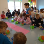 Dnia 8 kwietnia 2025 roku klasa 1a i 1 c pod opieką wychowawców pani Małgorzaty Skierkowskiej i pani Barbary Petrykowskiej – Bodal odwiedziła Zakątek Odkrywców i wzięła udział w warsztatach ,,Kredki”. Podczas tych warsztatów uczniowie obcowali z niezwykłym światem barw. Dzieci własnoręcznie wykonały kredki, które miały nie tylko żywe kolory, ale były również pachnące. Spotkanie w Zakątku Odkrywców urozmaicił pokaz Zaczarowanego Ołówka, który przeniósł wszystkie dzieci w niesamowity świat magii. Uczniowie pierwszych klas również tańczyli i bawili się pośród baniek mydlanych. Wszyscy zadowoleni i w dobrych humorach wrócili do szkoły.